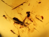 THREE WASPS MOSKITO + MORE in Mexican Amber Specimen
