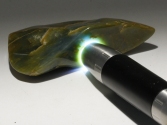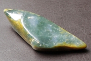 The thick skin on this piece has been completely removed and then it has been highly polished to bring out the full beauty of the stone. This piece has a unique green color and good translucency.