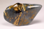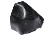 This piece has been polished to a mat finish. The main color is deep black with some visible pyrite inclusions.
