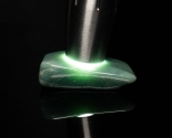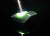 This jadeite specimen has been expertly polished with all its opaque surface skin removed in order to bring out the full beauty of the stone. Highlighting some of the the translucent emerald green color In this piece.