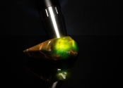 This jadeite specimen has been expertly polished to bring out the full beauty of the stone, highlighting the unique Imperial jadeite veins and translucent emerald green patterns through out this stone. The Champagne color is only near the surface as the deeper sections are blue and green.