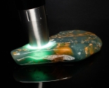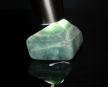 The thick skin on this piece has been completely removed and then it has been highly polished to bring out the full beauty of the stone. This piece has a unique mint green color and translucent emerald green patterns deeper inside.